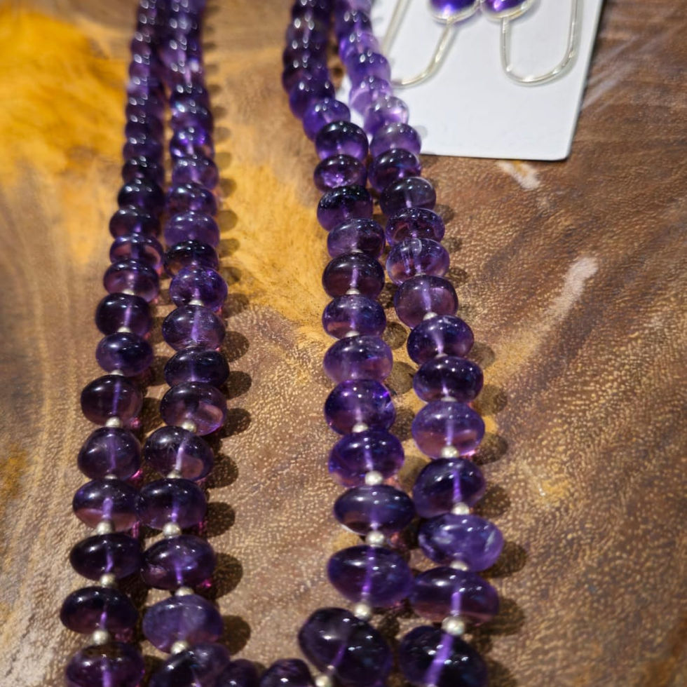 92.5 Silver, Real semi-precious amethyst beads, Unique design earrings, High quality stones, Tiny Silver beads as separators in between amethyst stone beads