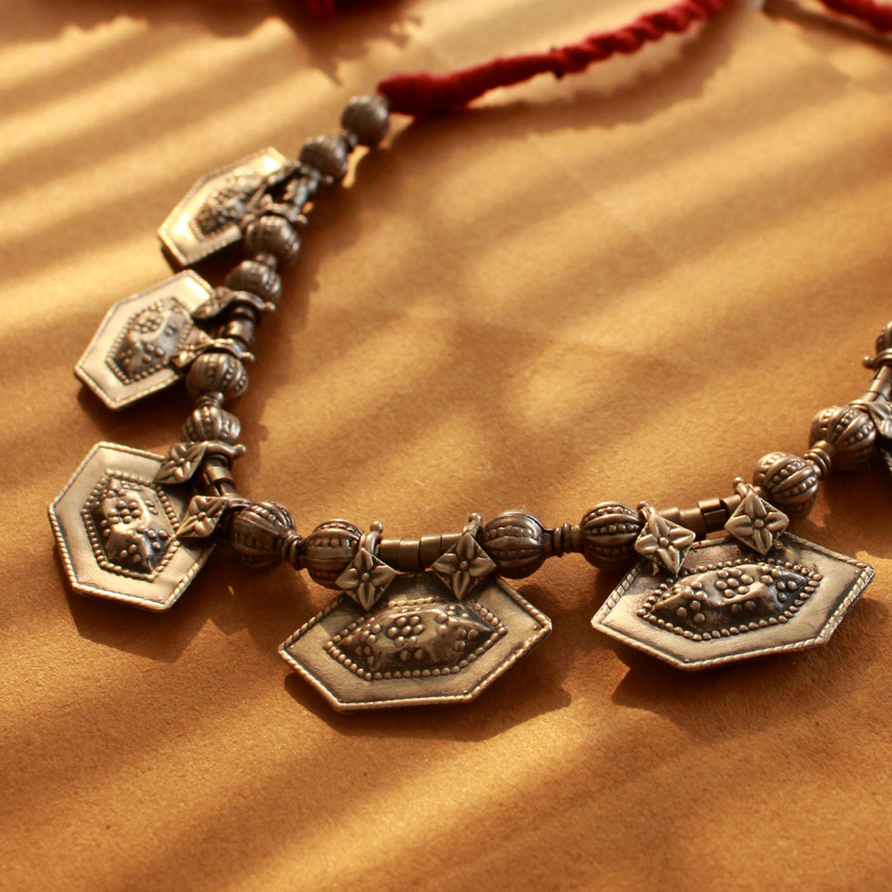 92.5 Silver, Antique look and finish, Reversible design - can be work both ways, Red threadwork cording